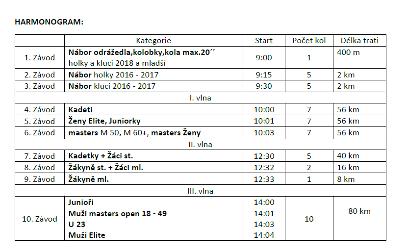 Součástí letošního ročníku bude také náborový závod pro nejmenší cyklisty, který tradičně otevře celý závodní den. Vzhledem k stále rostoucímu zájmu o dětské závody se organizátoři rozhodli zahájit program o půl hodiny dříve, aby byl vytvořen dostatečný prostor právě pro nejmladší účastníky.