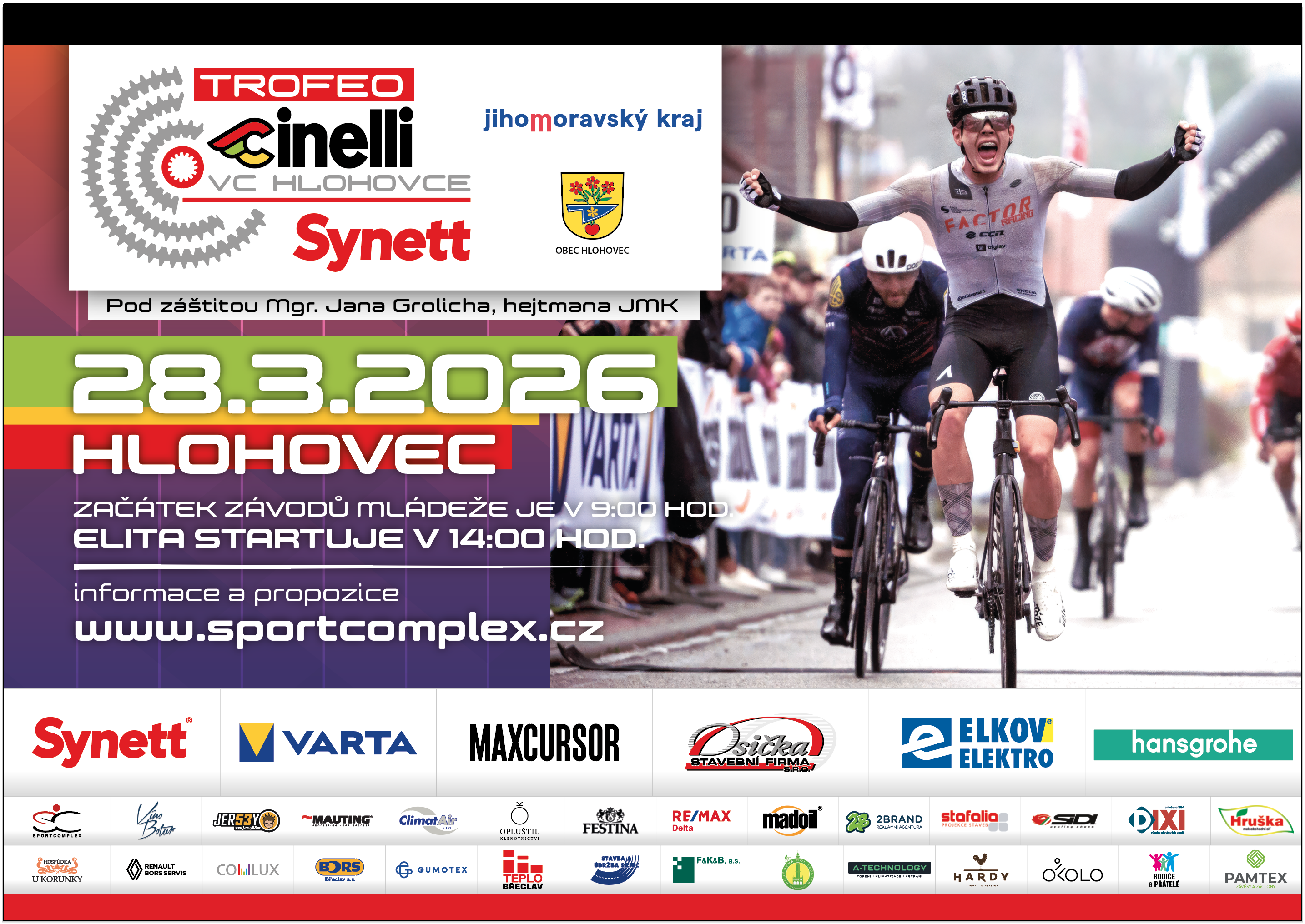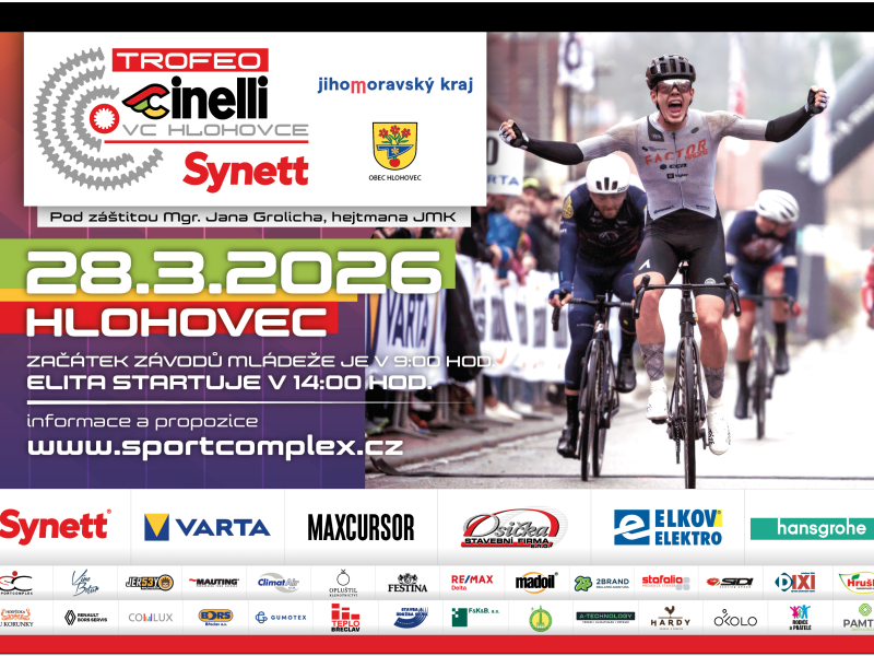 Čeká nás opět krásné zahájení nové silniční sezóny 21 kategoriemi, na které se velmi těšíme a které připravujeme s maximálním nasazením. Organizátoři ze Sportcomplexu Břeclav tímto závodem doslova žijí – Trofeo Cinelli – Synett je výjimečný podnik, který se od ostatních závodů liší nejen sportovní náročností, ale především jedinečnou atmosférou.